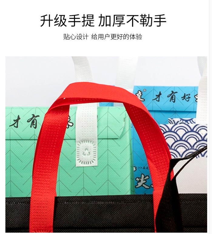 Third, the non-woven fabric insulation bag has a three-dimensional self-standing effect, and the seamless bottom of the ultrasonic welding body is formed, which can bear items within 15 kg without falling off. At present, non-woven fabrics have become the ideal choice for packaging of major food and beverage takeaways, beverages, shoes and clothing gifts.All kinds of non-woven handbags can be printed according to customer requirements.