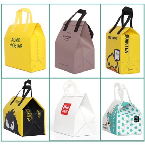 Third, the non-woven fabric insulation bag has a three-dimensional self-standing effect, and the seamless bottom of the ultrasonic welding body is formed, which can bear items within 15 kg without falling off. At present, non-woven fabrics have become the ideal choice for packaging of major food and beverage takeaways, beverages, shoes and clothing gifts.All kinds of non-woven handbags can be printed according to customer requirements.